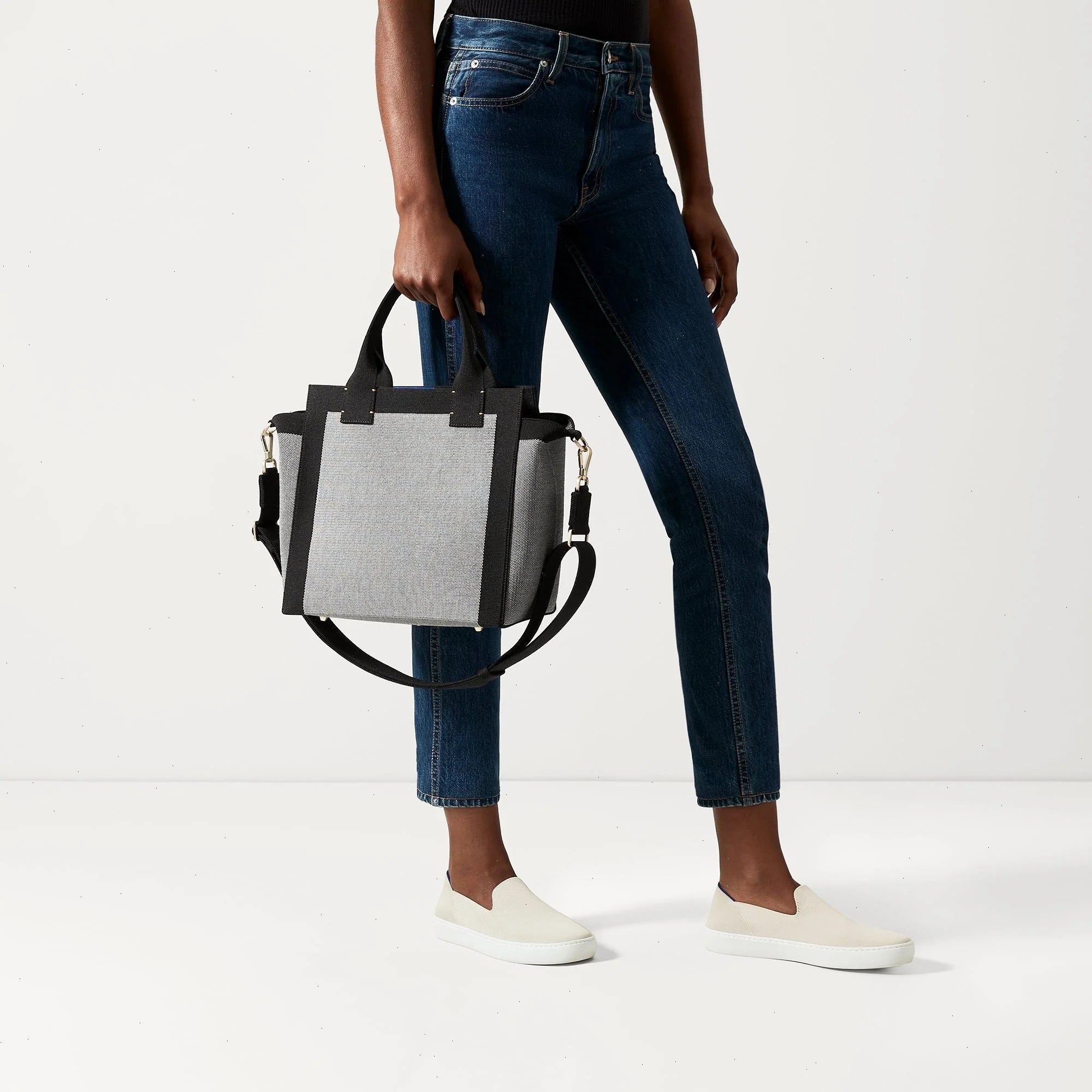 The Handbag in Grey Mist Structured color-blocked design in soft...
